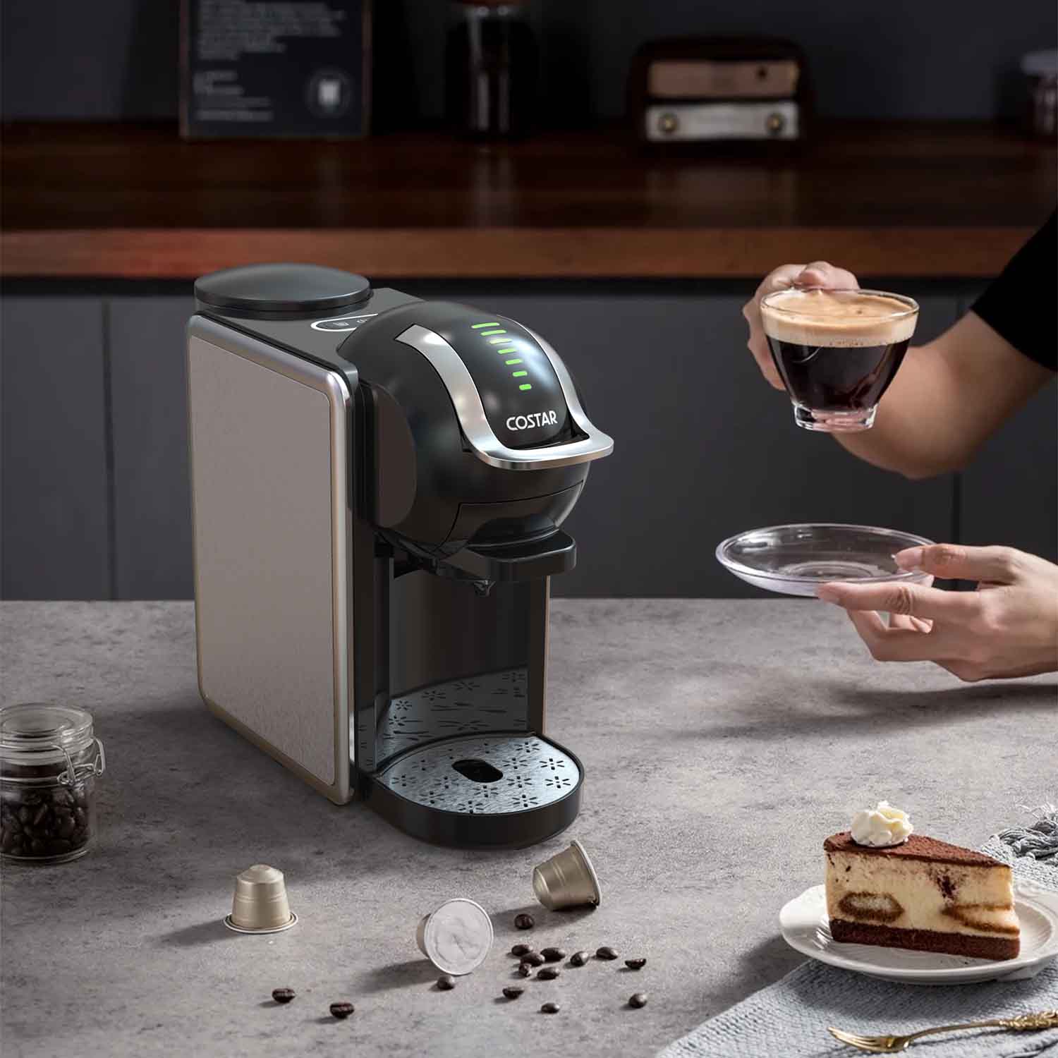 Brew with ease using Nespresso, Dolce Gusto, or coffee powder.