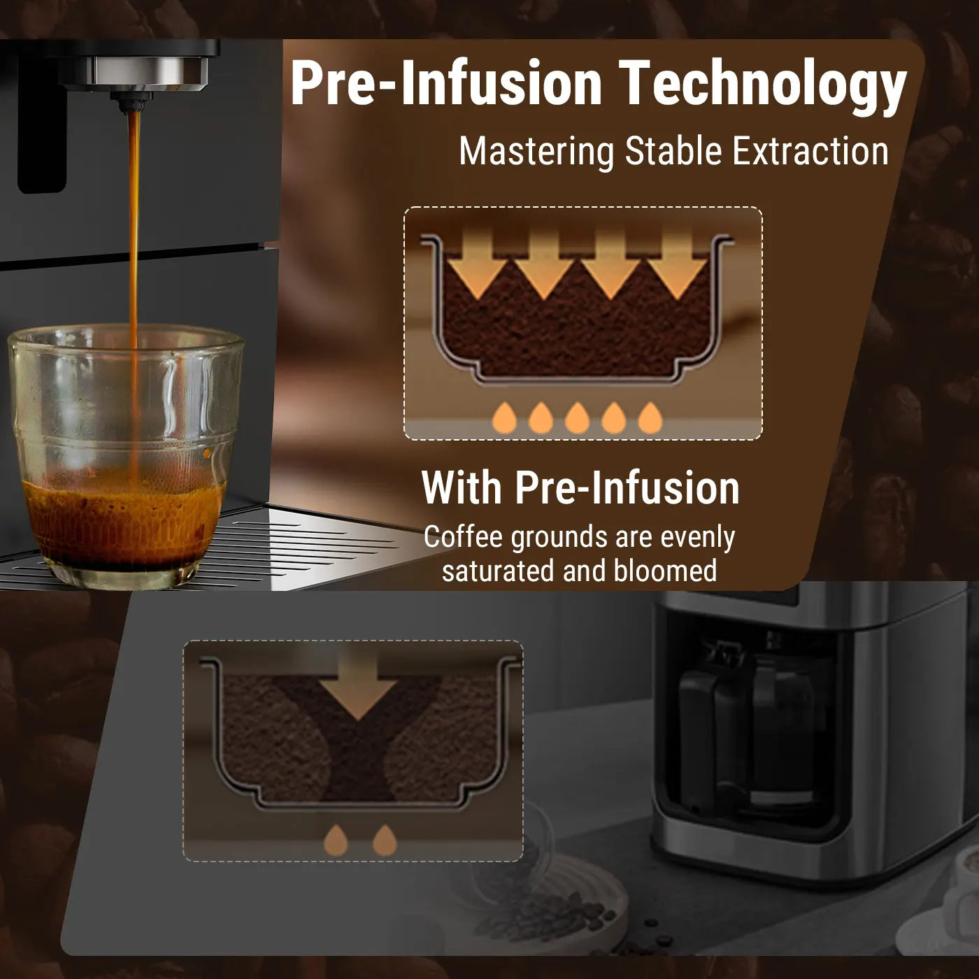 Evenly pre-soak coffee powder for fuller body and amplified taste—one press does it all.