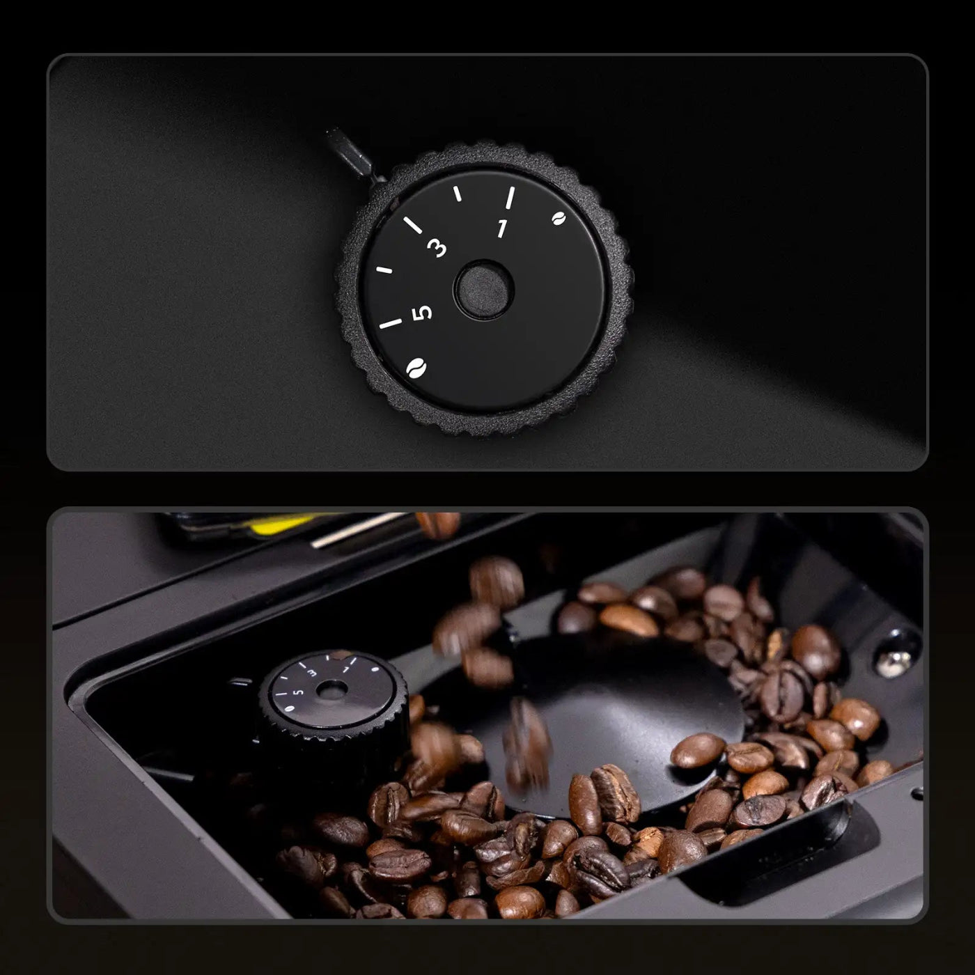 •Setting 1 (Finest): For intense espresso with maximum crema