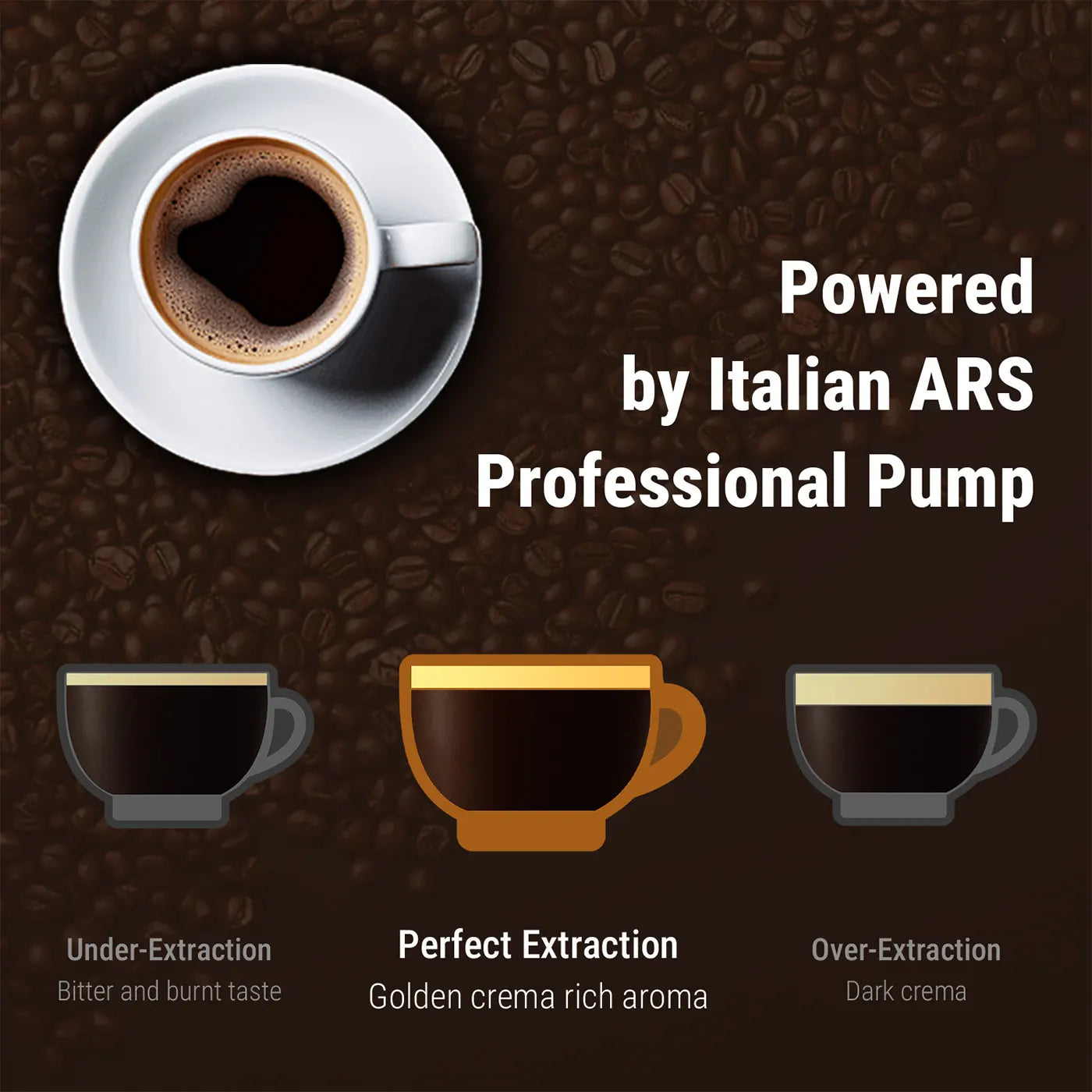 It provides perfect, stable pressure to unlock your coffee's true flavor potential, creating a rich, golden crema and unforgettable aroma in every shot.