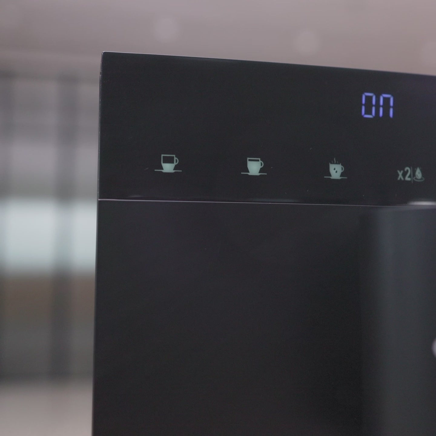 Simply touch an icon—Espresso, Americano, or Hot Water—and the machine instantly handles the rest for you.