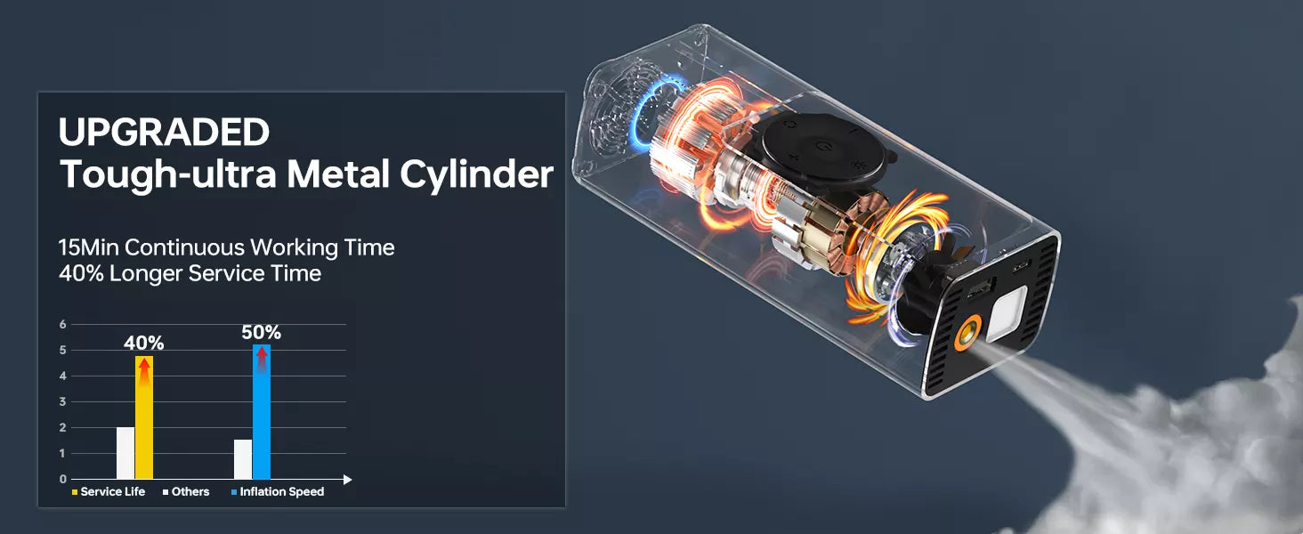 - 1-Minute Fast Inflation & High-Performance Metal Cylinder